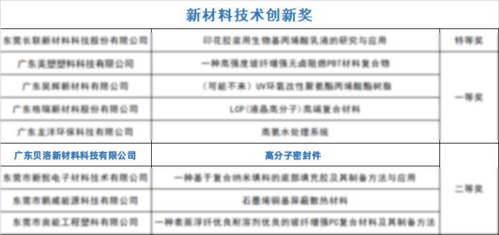 貝洛新材斬獲市新材料技術創新獎